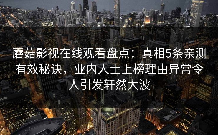 蘑菇影视在线观看盘点:真相5条亲测有效秘诀,业内人士上榜理由异常令人引发轩然大波